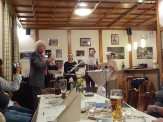 Zu seinem runden Geburtstag lud Hermann Backhaus alle ein, die ihn auf seinem musikalischen Lebensweg in Raab und Peuerbach begleitet haben. Zu einer musikalisch-literarischen Abendgesellschaft war geladen, den schönen Rahmen dazu gab der Saal des Gasthauses Boubenicek in Niederspaching. Hermann moderierte selbst mit feinem Witz und Humor. Mit seinen „Begleiterinnen und Begleitern“ sang er im Duett und im Terzett. Der Kirchenchor und die Liedertafel trugen ebenfalls zum Programm bei. Ein herrlich amüsanter Abend mit Tiefgang.